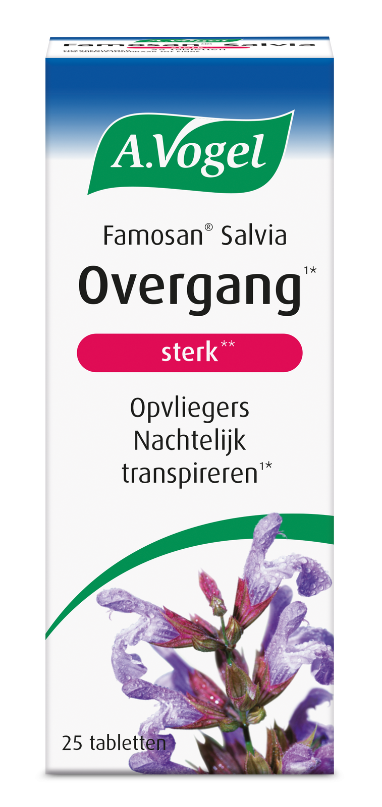 A.Vogel Famosan Salvia Overgang Sterk is een zuiver en 100% natuurlijk product dat specifiek helpt overgang symptomen, zoals opvliegers, zweten en nachtzweten (nachtelijk transpireren)*. Famosan Salvia bevat namelijk een extra krachtig extract van de plant Salvia officinalis