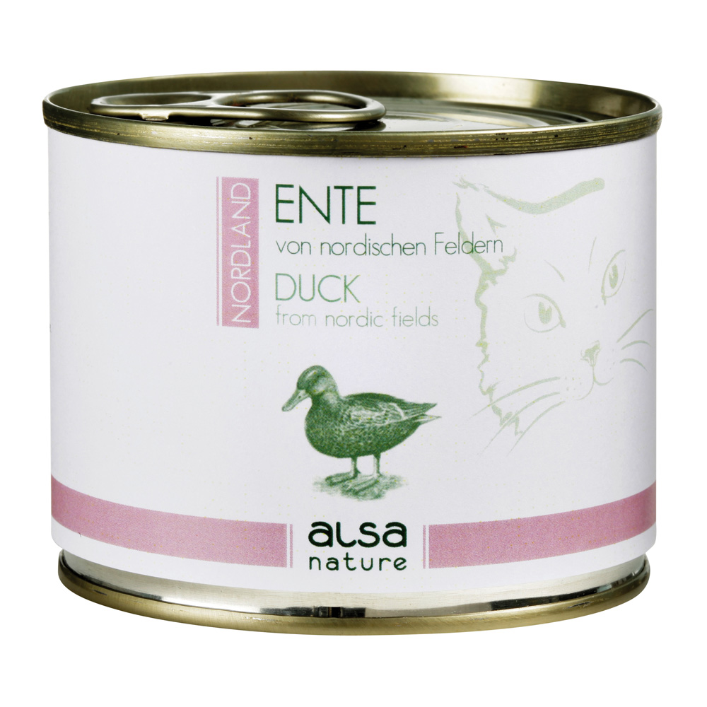 alsa-nature Nordland Eend van de noordelijke landen – alsa-nature Nordland Eend van de noordelijke landen is een speciaal samengestelde complete voeding welke de beste compatibiliteit garandeert. De smakelijke ingewanden en het licht verteerbare vlees van de noordelijke eenden leveren vele belangrijke vitaminen die essentieel zijn voor de gezondheid van uw kat.