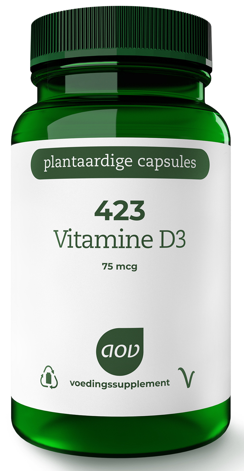 AOV 423 Vitamine D3 75mcg Capsules (90 stuks) met een hoge dosering 75 mcg vitamine D per tablet en bevat een actieve vorm van vitamine D. Zonlicht is de belangrijkste bron van vitamine D. Het lichaam kan onder invloed van zonlicht in de huid vitamine D zelf aanmaken.