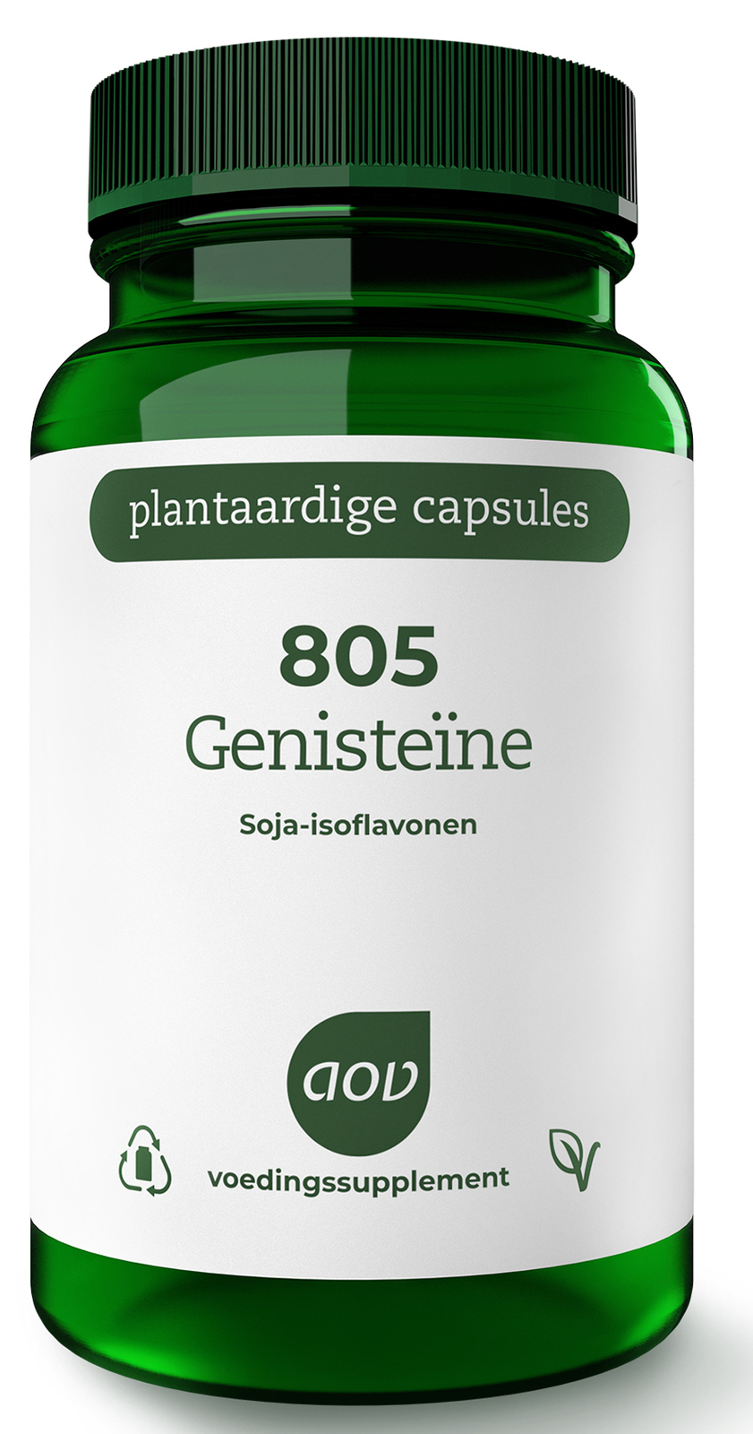 AOV 805 Genesteïne Soja-isoflavonen Vegacaps bevat een soja isoflavonen-complex en een dagdosering 88mg genisteïne. Genisteïne behoort tot de isoflavonen, stoffen die met name in sojabonen voorkomen. Bij dit supplement wordt uitsluitend gebruik gemaakt van sojabonen die niet
