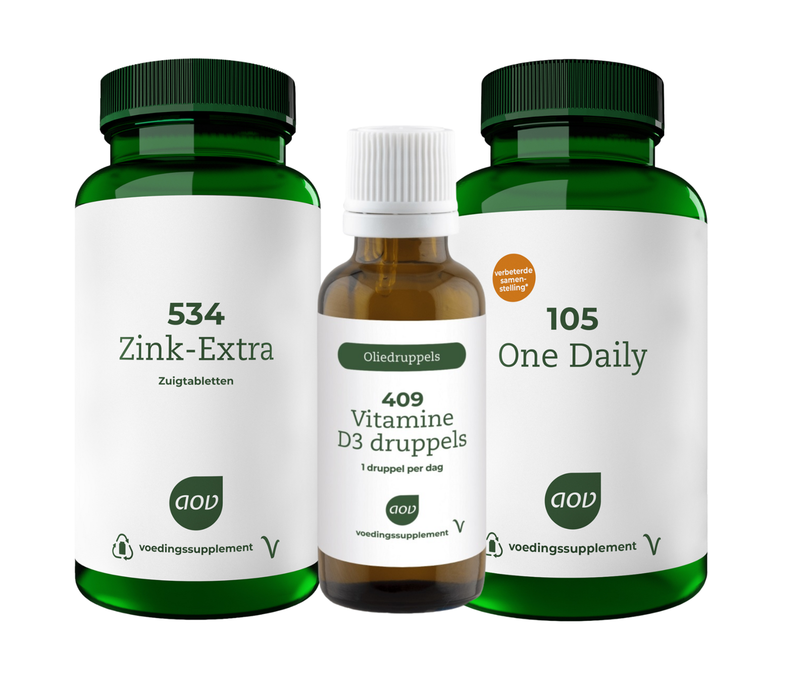 Ondersteun uw weerstand met een bundel van drie supplementen die uw voeding aanvullen: een uitgebalanceerde multivitamine, vitamine D en zink.AOV Weerstand Basis Bundel bestaat uit:1x AOV 105 One Daily Tabletten 60TB – 105 One Daily Tabletten: Deze multivitamine met goed