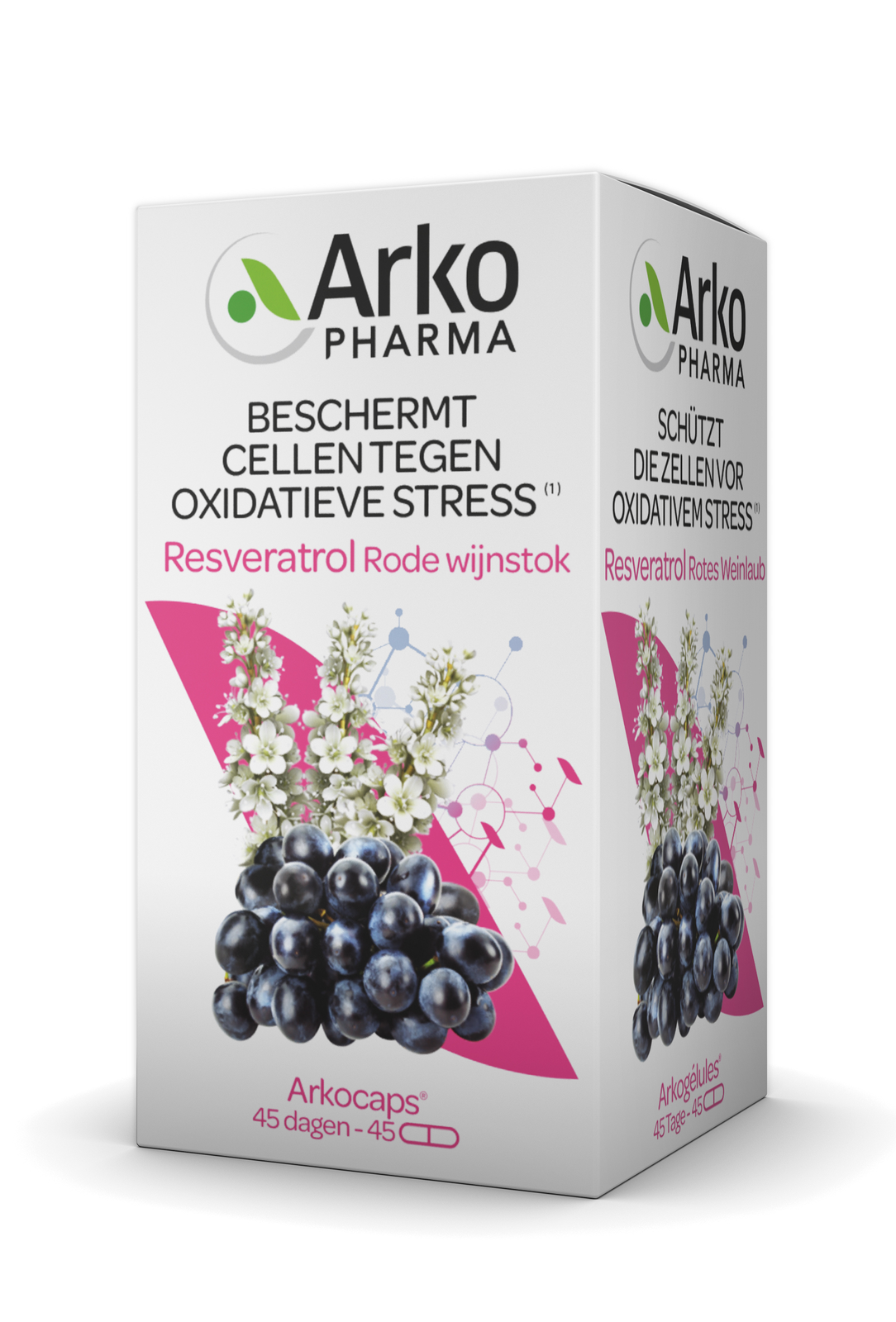 Arkocapsules® Resveratrol is een voedingssupplement. Rode Wijnstok heeft antioxiderende eigenschappen. Zink en Selenium helpen de cellen te beschermen tegen oxidatieve stress. Zink draagt bij aan het behoud van een gezonde huid.Dankzij de unieke expertise van Arkopharma