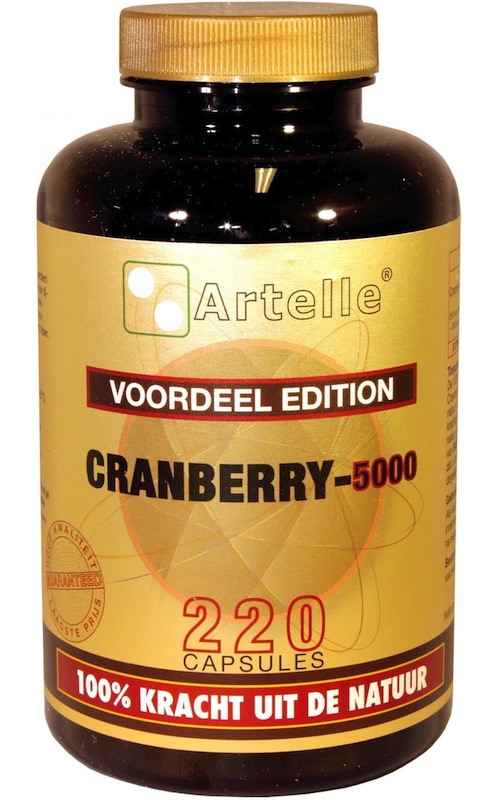 Artelle Cranberry 5000mg 5000 mg met pure Cranberry zonder vulstoffen en/of andere toevoegingen DoseringAls kuur4 maal daags 1 capsule met ruim water innemen tot het gewenste resultaat is bereikt, waarna overgegaan kan worden op 1-2 capsules per dag.Als onderhoudsdosering1
