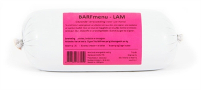 Barfmenu lam premium 1000grBARFmenu’s worden gemaakt van uitsluitend vers rauw vlees, verse organen, verse vleesbotten van superieure kwaliteit, al dan niet aan te vullen met BARFmenu – Groentemix.BARFmenu is een officieel geregistreerde merknaam. Het is een gegarandeerd kwaliteitsproduct waarbij de ingrediënten met uiterste zorg worden ingekocht, samengesteld en onder ideale omstandigheden verwerkt wat garant staat voor een constante hoge kwaliteit. Het versvoer is van dusdanig hoge kwaliteit dat het zelfs voor menselijke consumptie geschikt is. (dus geen afvalvlees).- Bevat van nature een hoog gehalte aan natuurlijke vitaminen en mineralen.- Zonder geur-, kleur-, smaakstoffen en/of conserveringsmiddelen.- Glutenvrij (bevat geen rijst of granen).Aanvullend diervoeder voor honden.Samenstelling: Vers lamsvlees, verse lamsorganen, verse lamspens en verse lamsbotten. Bevat dierlijke vezels.Analytische bestanddelen: Vocht 61,74%, As 3,47%, Eiwit 17,09%, Vet 17,59%, Celstof 0,34%, Calcium 0,70%, Fosfor 0,62%, Ca:P 1,12Energie (kcal/100g): 226,71Voedingsadvies per kg lichaamsgewicht: Volwassen 25 gram, Puppy 50 gramInhoud: 1000 gram