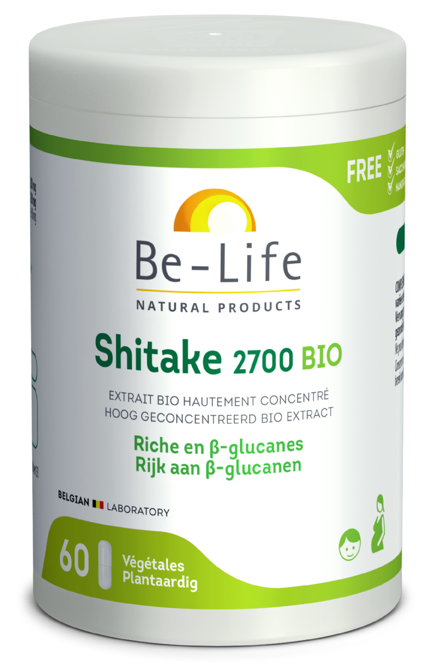 Be-Life Shitake 2700 is een hoogwaardig, biologisch voedingssupplement met shitake. Shitake is een eetbare paddenstoel die veel gebruikt wordt in de Aziatische keuken. Het is een natuurlijke bron van o.a. vitamine B, essentiële aminozuren, sporenelementen en