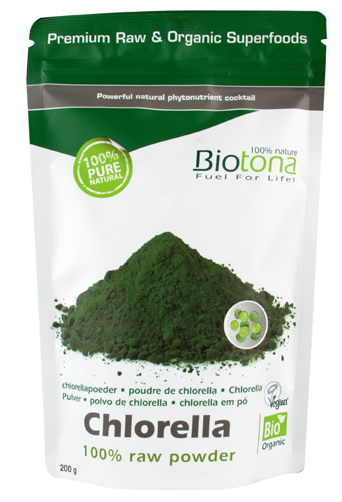 Biotona Chlorella Raw Poeder is een 100% biologische poeder. De poeder bevat blauwgroene algen die diverse vitamines, mineralen en enzymen bevatten. De van nature aanwezige chlorofyl zorgt voor de blauwgroene kleur van het poeder.Hoe te gebruiken?Voeg toe aan smoothies of