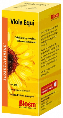 Bloem Viola Equi Druppels is een natuurlijk voedingsupplement op basis van kruidentincturen. Werkt bloedzuiverend*.Driekleurig viooltje*.DoseringDosering volwassenen: 4 maal daags 30 druppels innemen met weinig water.Indien nodig ieder uur deze dosering innemen.Dosering