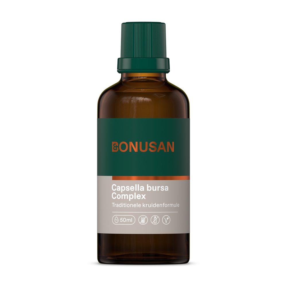 Bonusan Capsella bursa Complex Tinctuur (50 ml) bevat een uitgebalanceerde combinatie van Capsella bursa-pastoris en Potentilla erecta. De kruiden in dit complex vullen elkaar perfect aan. Capsella bevat onder andere looistoffen, choline en acetylcholine. Bovendien is de