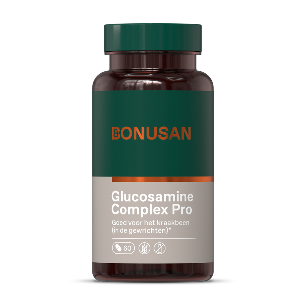 Bonusan Glucosamine Complex Pro Tabletten (60 stuks) zijn een complete formule voor actieve mensen die graag zo actief willen blijven. De tabletten bevatten onder andere glucosamine, chondroïtine en MSM. Daarnaast is het supplement verrijkt met mangaan, dat bijdraagt aan de