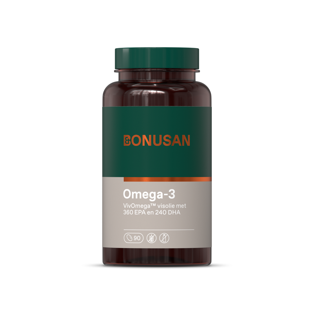 Bonusan Omega-3 360mg EPA 240mg DHA Softgels (90 stuks) bieden een geconcentreerde bron van omega-3 vetzuren, met 360 mg EPA (eicosapentaeenzuur) en 240 mg DHA (docosahexaeenzuur) per softgel. Deze essentiële vetzuren worden geleverd in hun natuurlijke triglyceridenvorm, wat