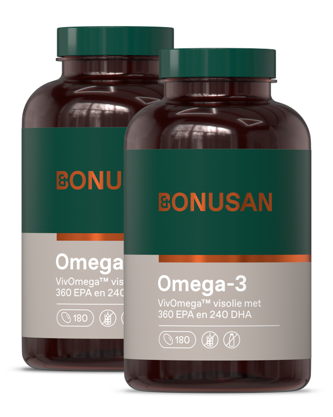 Bonusan Omega-3 Softgels (180 stuks) bieden een geconcentreerde bron van omega-3 vetzuren, met 360 mg EPA (eicosapentaeenzuur) en 240 mg DHA (docosahexaeenzuur) per softgel. Deze essentiële vetzuren worden geleverd in hun natuurlijke triglyceridenvorm, wat de optimale opname