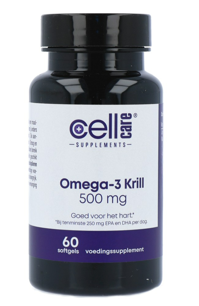 CellCare Omega-3 Krill bevat zuivere Krillolie in vegacapsules. Deze Krillolie is, net als visolie, rijk aan de Omega-3 vetzuren EPA en DHA. Het verschil met visolie is dat de Omega-3 vetzuren in Krillolie gebonden zijn aan fosfolipiden in plaats van triglyceriden en worden