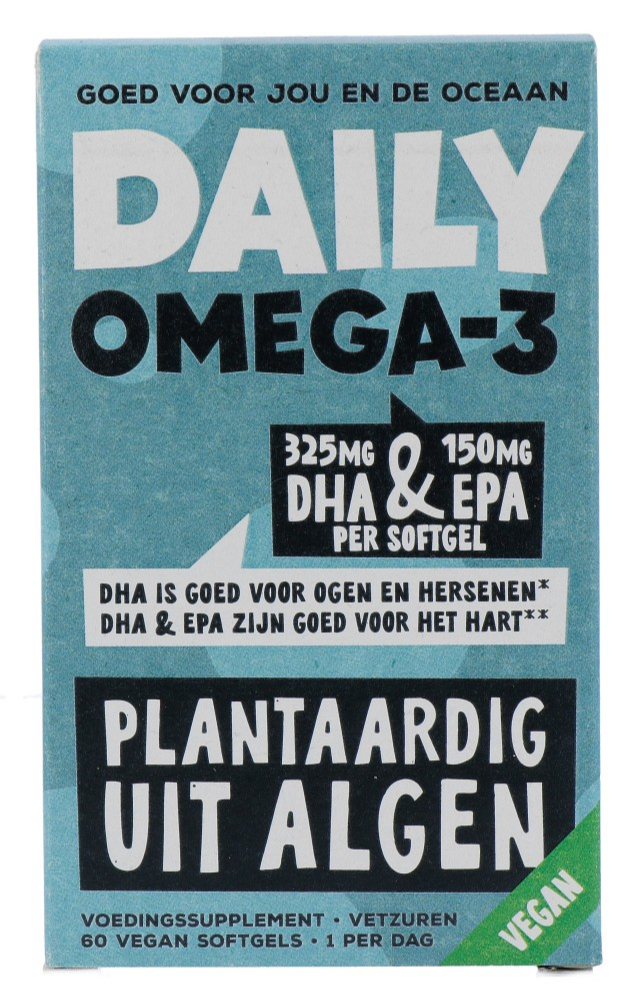 Daily Omega-3 DHA & EPA Vegan Softgels is een perfecte vervanging voor visolie, aangezien deze softgels DHA & EPA bevatten die rechtstreeks uit duurzaam op het land gekweekte algen zijn gehaald. Hierdoor zijn deze softgels visvrij en 100% plantaardig. DHA is gunstig voor het