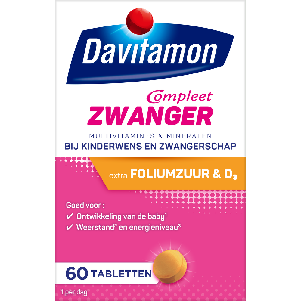Davitamon Compleet Zwanger Tabletten zijn speciaal ontwikkeld voor vrouwen met een kinderwens, zwangere vrouwen en vrouwen die borstvoeding geven. Deze tabletten zijn een complete aanvulling op uw voeding en bevatten een combinatie van vitamines en mineralen, waaronder