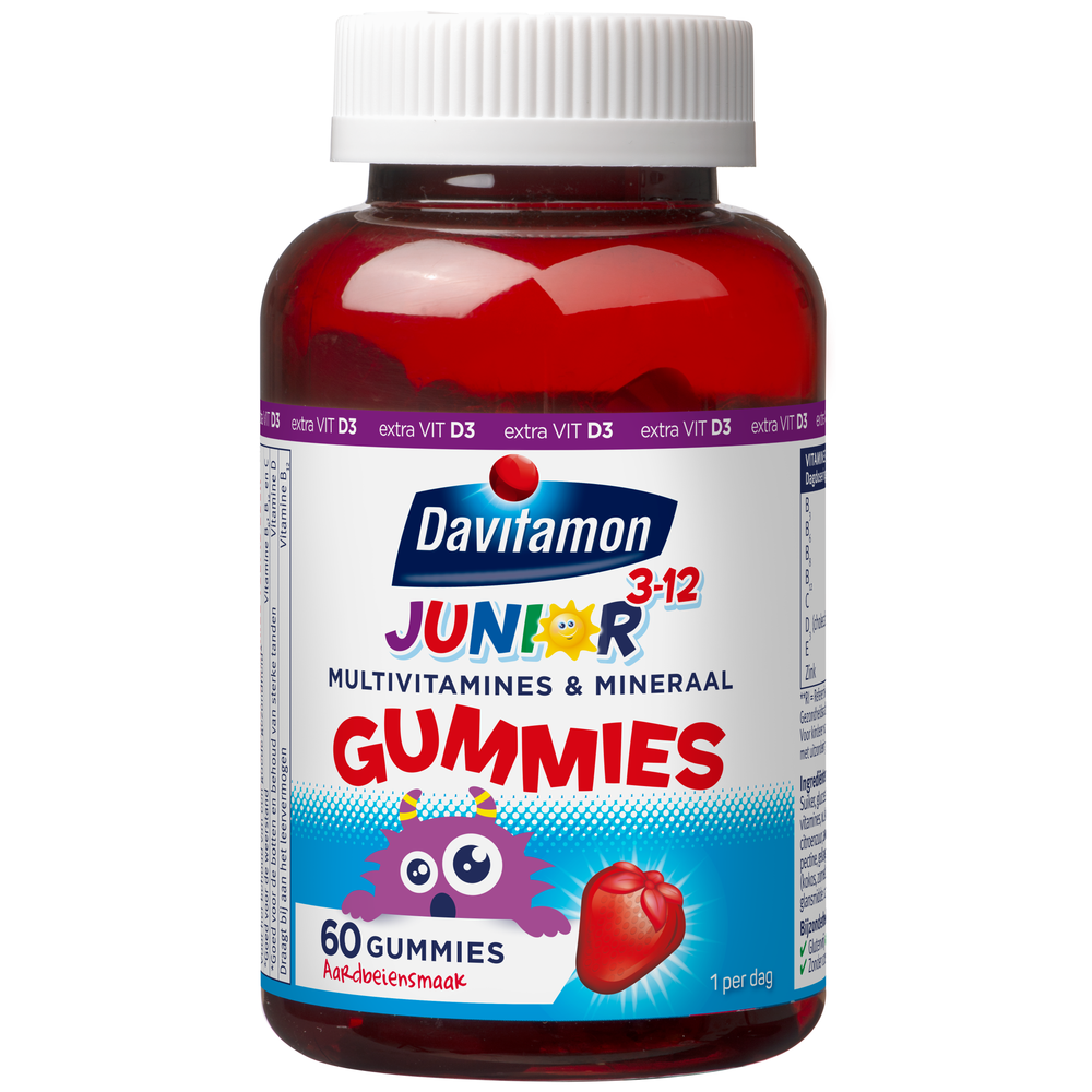 Davitamon Junior Gummies is een voedingssupplement in de vorm van lekkere gummies, speciaal ontwikkeld voor kinderen vanaf 3 jaar. Deze uitgebalanceerde formule bevat belangrijke vitamines en mineralen, waaronder extra vitamine D, die nodig zijn voor een goede groei en