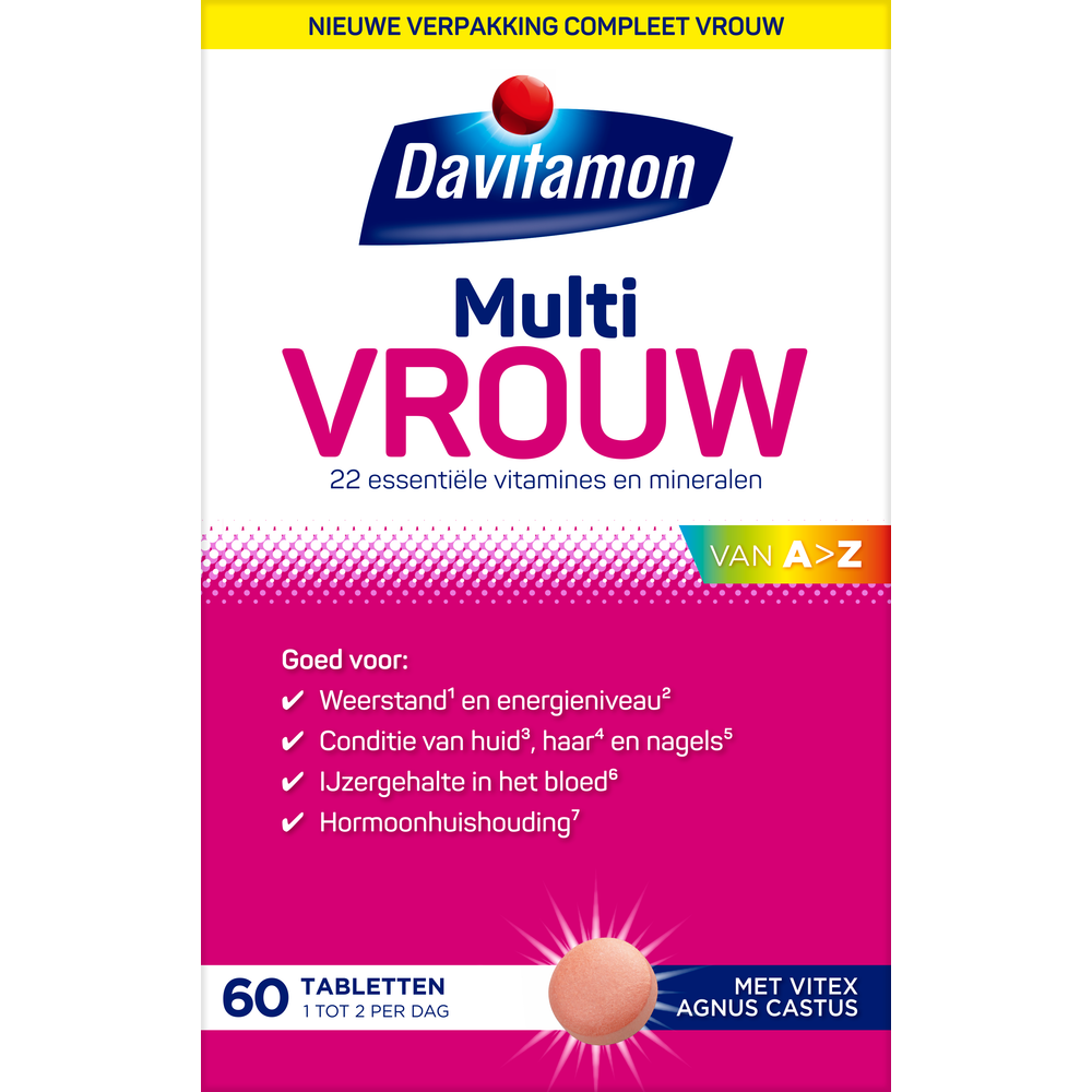 Davitamon Multi Vrouw Tabletten zijn speciaal ontwikkeld voor vrouwen en ondersteunen het vrouwelijk lichaam op verschillende gebieden. Deze tabletten bevatten vitamines, mineralen en het natuurlijke extract Vitex agnus castus. De samenstelling is zorgvuldig