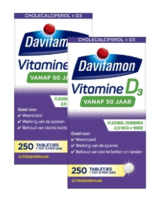 Davitamon Vitamine D 50+ Tabletten zijn speciaal ontwikkeld voor volwassenen vanaf 50 jaar om in de verhoogde behoefte aan vitamine D te voorzien. Vitamine D is essentieel voor verschillende lichaamsfuncties en speelt onder andere een belangrijke rol bij het behoud van