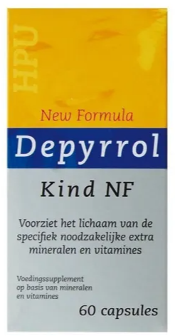 Depyrrol Kind NF Capsules (60 VCP) is een zorgvuldig samengesteld vitaminen- en mineralenpreparaat speciaal ontwikkeld voor kinderen vanaf 4 jaar. Dit voedingssupplement voorziet het lichaam van specifiek noodzakelijke extra mineralen en vitamines. Het product bevat een