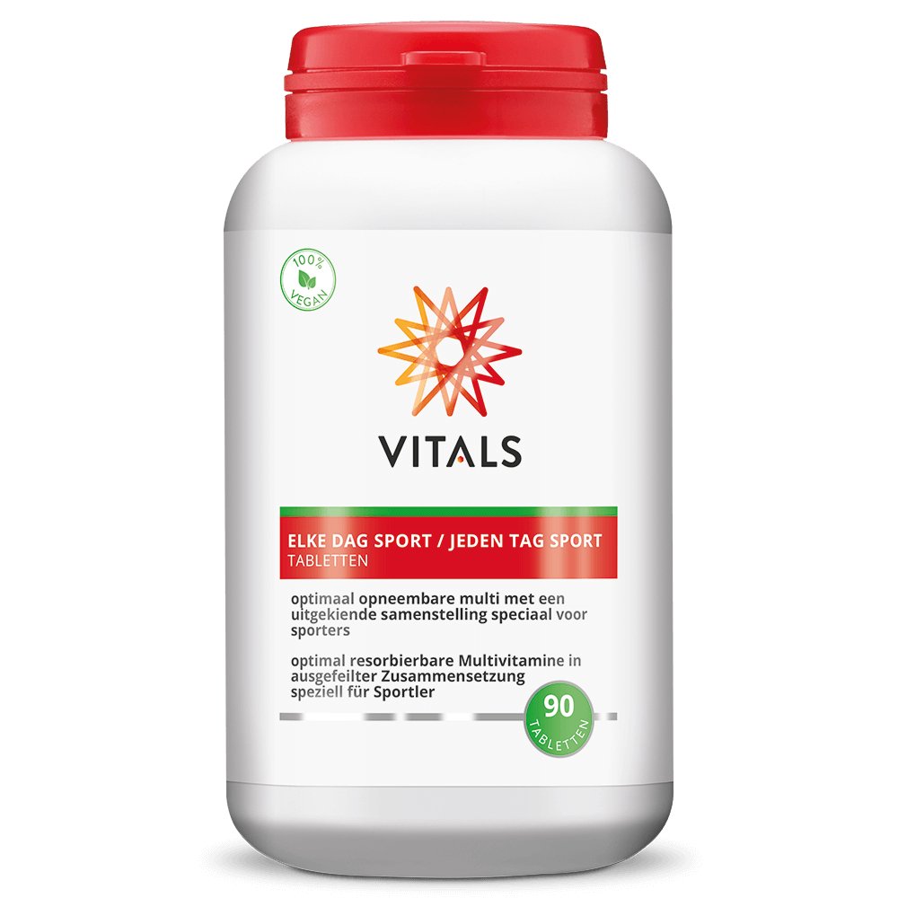 Elke Dag Sport heeft exact dezelfde samenstelling als Elke Dag Tabletten, de meest populaire multi van Vitals. Het enige verschil is de naam en dat elke batch van Elke Dag Sport volgens het NZVT-systeem wordt gecontroleerd op doping en gecertificeerd wordt.