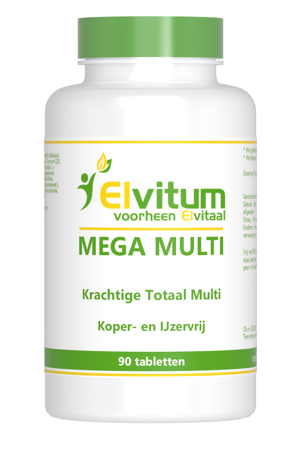 In verband met aangepaste EU-wetgeving is de naam Elvitaal gewijzigd naar Elvitum.De kwaliteit en de samenstelling van de supplementen is ongewijzigd gebleven. Elvitum Mega Multi is een krachtige multivitamine, vrij van kopen en ijzer.Dosering1 à 2 keer daags 1 tablet.