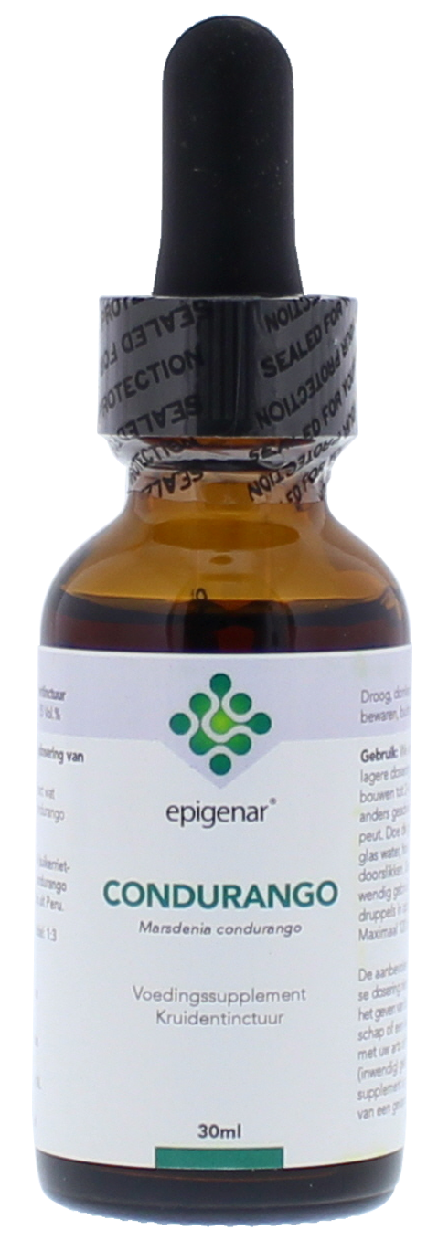 Epigenar Condurango Kruidentinctuur bevat Condurango (Marsdenia condurango) schors extract uit Peru.De kruidentincturen van Epigenar worden voornamelijk bereid uit geselecteerde planten die eeuwenlang worden gebruikt door Indianen van Peru en Braziliƫ. Om materialen van de