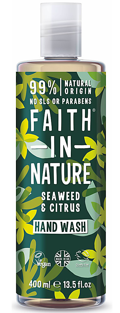 Faith in Nature Seaweed & Citrus Hand Wash is een natuurlijke, vegan handzeep op basis van biologisch zeewier. De subtiele mix van essentiële oliën reinigt en verzorgt de huid. Biologisch zeewier is rijk aan jodium, selenium en andere essentiële mineralen, vitaminen en