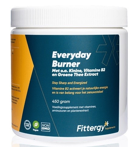 Fittergy Everyday Burner Poeder bevat een unieke, uitgekiende samenstelling van essentiële aminozuren, kinine, groene thee extract en vitamine B2. Dit supplement is uitermate geschikt na een sportvastenkuur, in combinatie met intermitting fasting of tijdens een calorieën