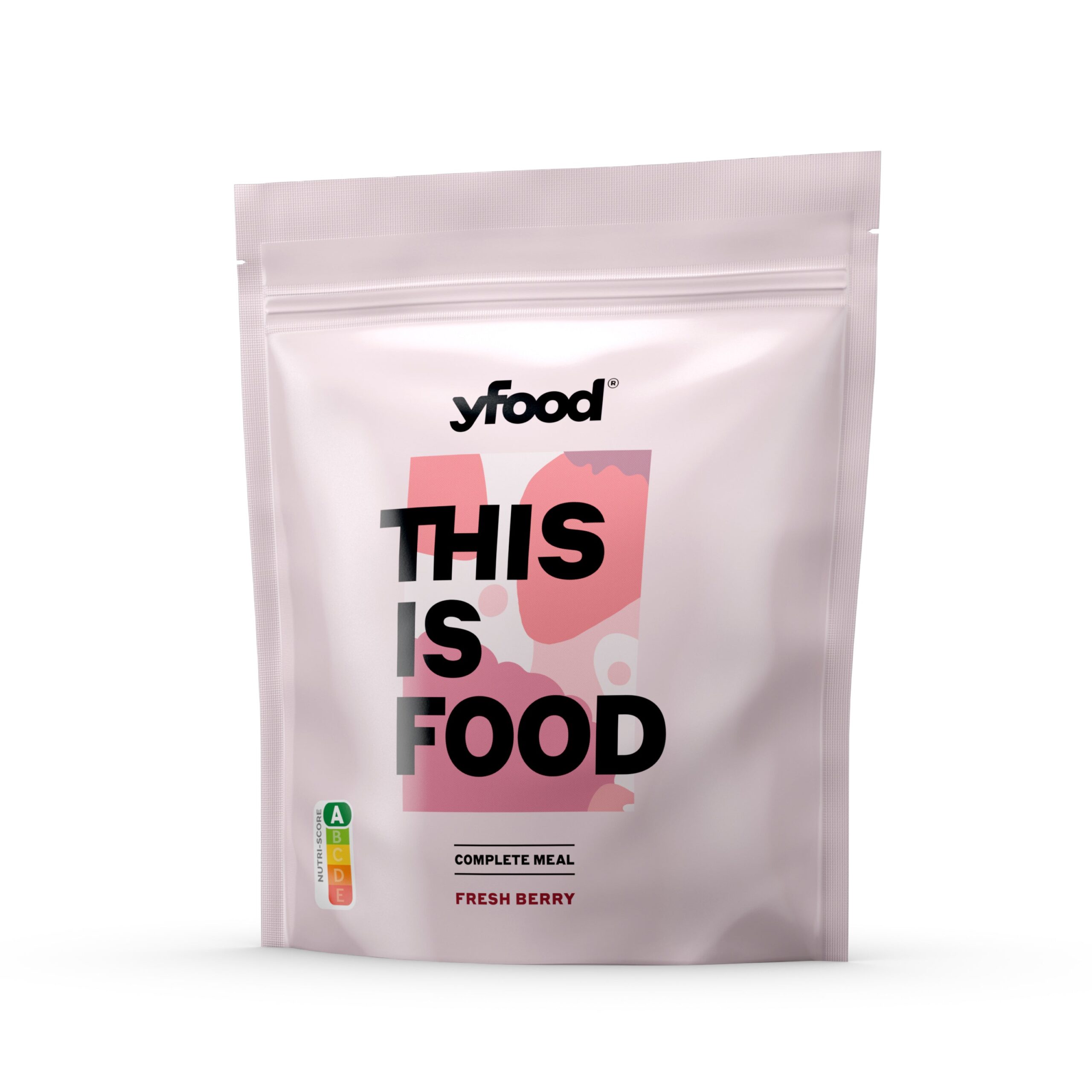 yfood maaltijdvervangende Fresh Berry poeder | Een zak van 1 kg bevat 12 volledige maaltijden | Een powder maaltijd is rijk aan alle voedingsstoffen die je lichaam nodig heeft: veel proteïne, vezels en 26 vitaminen en mineralen | De complete maaltijd in de vorm van een powder is de lekkerste op de markt en gebruikt alleen natuurlijke smaken | yfood powder is lactose- en glutenvrij en bevat geen soja of noten | Een portie yfood powder bevat 400 kcal | Ideaal om je gewicht te behouden en als proteïneshake voor tijdens of na het sporten en spiertraining | yfood: gebalanceerd, betaalbaar en een heerlijk alternatief voor ongezond junkfood