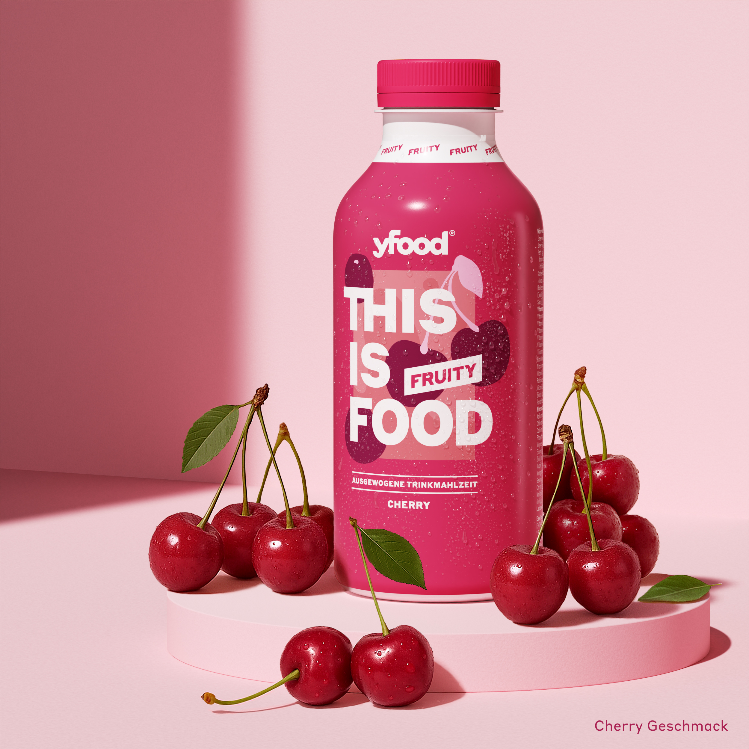 yfood drinkbare maaltijdvervanger Cherry Fruity is een volledige nutritionele maaltijd in een fles: 3 tot 5 uur geen hongergevoel. Een yfood drinkbare maaltijd bevat alles wat je lichaam nodig heeft: rijk aan proteïnen, 39 gram glutenvrije koolhydraten, 7,5 gram vezels en 26 vitaminen en mineralen. Onze gebalanceerde drinkbare maaltijd wordt geleverd in recyclebare flessen en kun je op elk moment drinken. Er is geen voorbereiding nodig. De drinkbare maaltijd is de lekkerste op de markt en er worden alleen natuurlijke smaken gebruikt | yfood is lactose- en glutenvrij en bevat geen soja of noten. Een yfood fles van 500 ml bevat 25% van de aanbevolen dagelijkse hoeveelheid voedingsstoffen en calorieën.