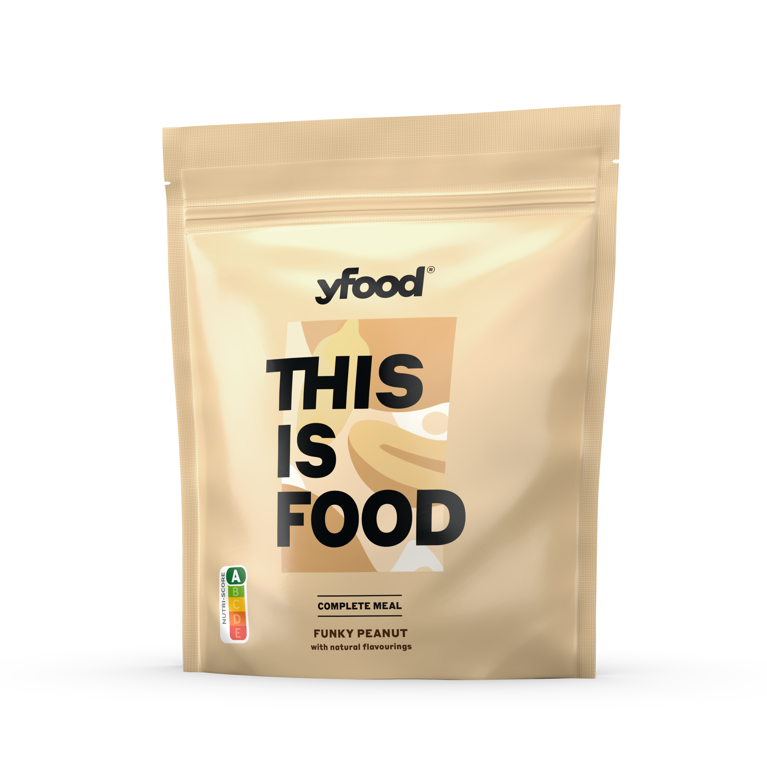 yfood maaltijdvervangende Funky Peanut poeder | Een zak van 1 kg bevat 12 volledige maaltijden | Een powder maaltijd is rijk aan alle voedingsstoffen die je lichaam nodig heeft: veel proteïne, vezels en 26 vitaminen en mineralen | De complete maaltijd in de vorm van een powder is de lekkerste op de markt en gebruikt alleen natuurlijke smaken | yfood powder is lactose- en glutenvrij en bevat geen soja of noten | Een portie yfood powder bevat 400 kcal | Ideaal om je gewicht te behouden en als proteïneshake voor tijdens of na het sporten en spiertraining | yfood: gebalanceerd, betaalbaar en een heerlijk alternatief voor ongezond junkfood