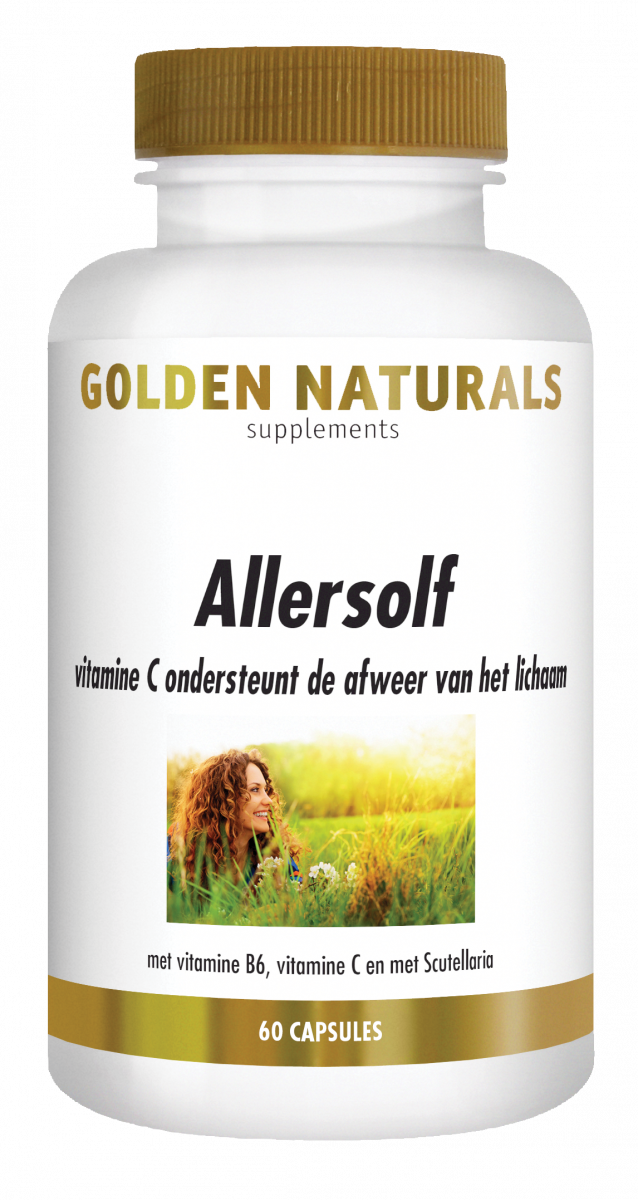 Golden Naturals Allersolf Capsules is een voedingssupplement met vitamine C en B6 die de afweer van het lichaam ondersteunen. Daarnaast bevat het complex circa 1.8 miljard levensvatbare bacteriën en een breed spectrum aan kruiden, waaronder Scuttelaria (Glidkruid).Golden