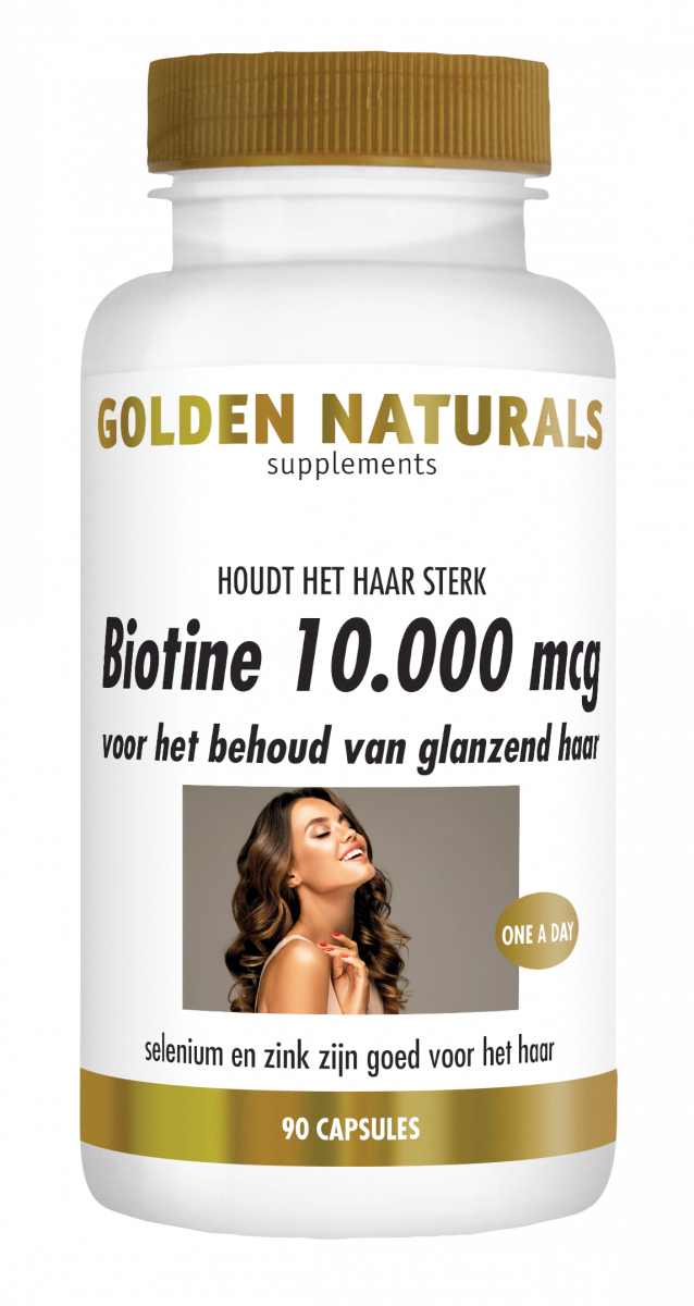 Golden Naturals Biotine 10.000 mcg bevat combineert biotine met seleen en zink: seleen en zink zijn goed voor haar en nagels en zink draagt bovendien bij aan een gezonde huid. Biotine staat bekend als de meest bekende vitamine voor haar en haargroei. Het is een