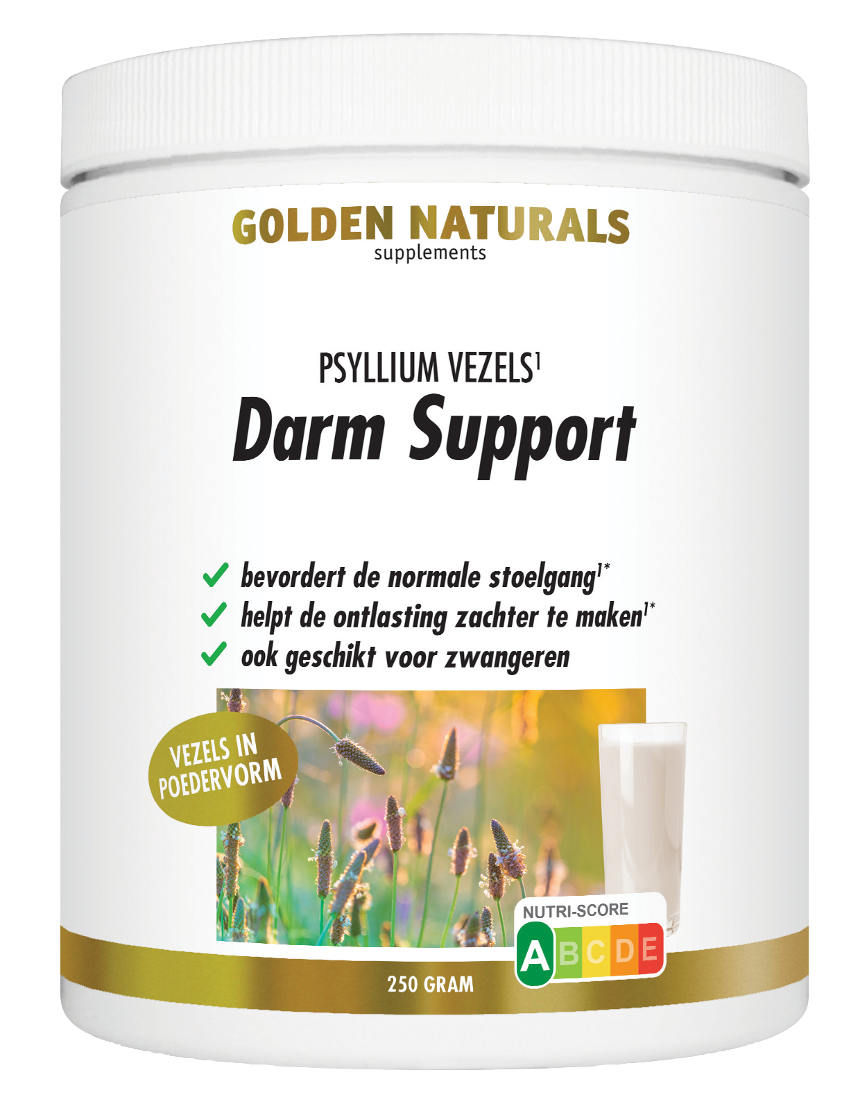 Golden Naturals Darm Support Poeder is een voedingssupplement op basis van Psyllium vezels, ook wel bekend als vlozaadvezels. Dit zijn de zogenaamde zaadhuiden van zaden van planten en bestaan voor een hoog percentage uit niet-verteerbare vezels. Deze voedingsvezels in