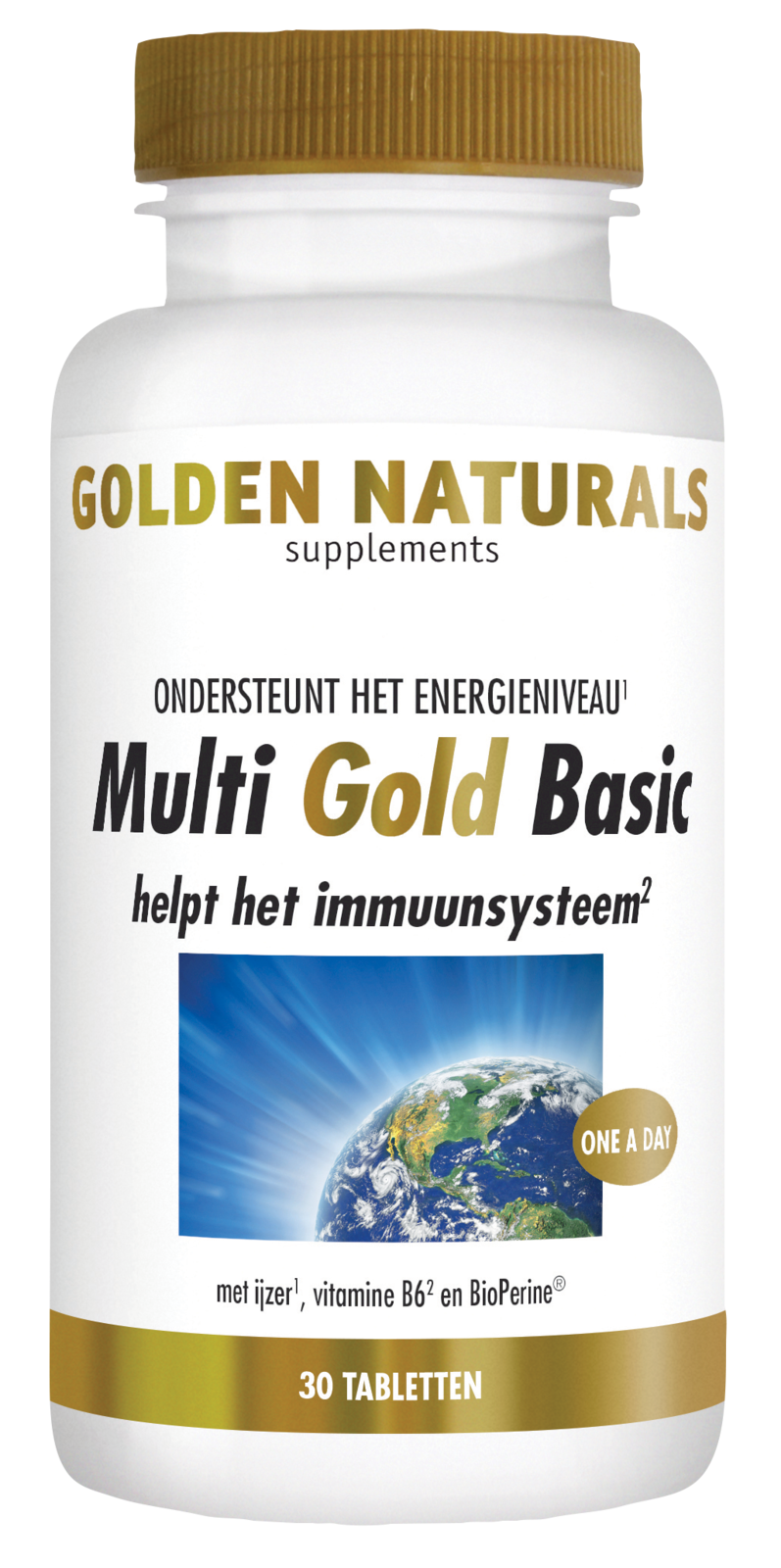 Golden Naturals Multi Gold is een complete Multi-vitamine, ideaal voor mensen die een aanvulling zoeken op hun voeding. De vitaminen in deze Multi komen in bioactieve vorm, wat betekent dat ze snel opgenomen worden en dus snel effectief zijn. Deze multi bevat onder andere