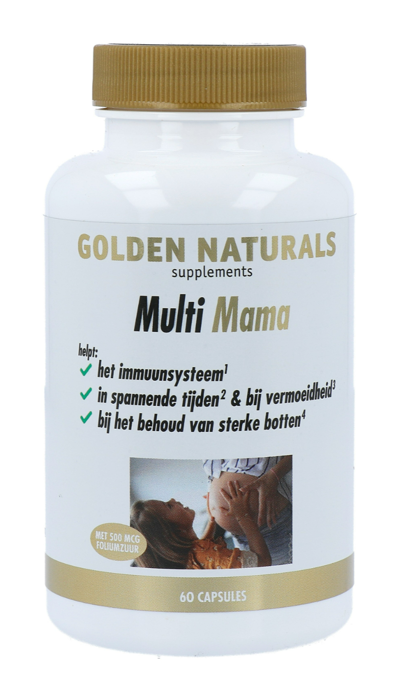 Golden Naturals Multi Mama (60st) is speciaal ontwikkeld voor vrouwen in de fase voor, tijdens en na de zwangerschap, inclusief borstvoeding. De formule richt zich op optimale gezondheid voor zowel de (aanstaande) moeder als het (ongeboren) kindje. Deze multivitamine bevat