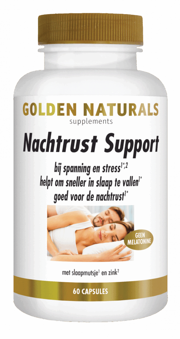 Golden Naturals Nachtrust Formule is een voedingssupplement met diverse kruiden(extracten) waaronder slaapmutsje en citroenmelisse-extract die een helpen om lekker te slapen*. Daarnaast bevat het Zink dat ondersteuning biedt bij spanning en stress. Bovendien is de Nachtrust