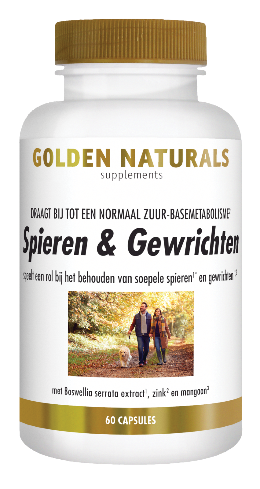 Golden Naturals Spieren En Gewrichten Capsules is een voedingssupplement op basis van kruiden en mineralen. Boswellia serrata is goed voor de gewrichtsfunctie* en speelt een rol bij het behoud van soepele spieren en gewrichten*. Mangaan is goed voor de aanmaak van kraakbeen