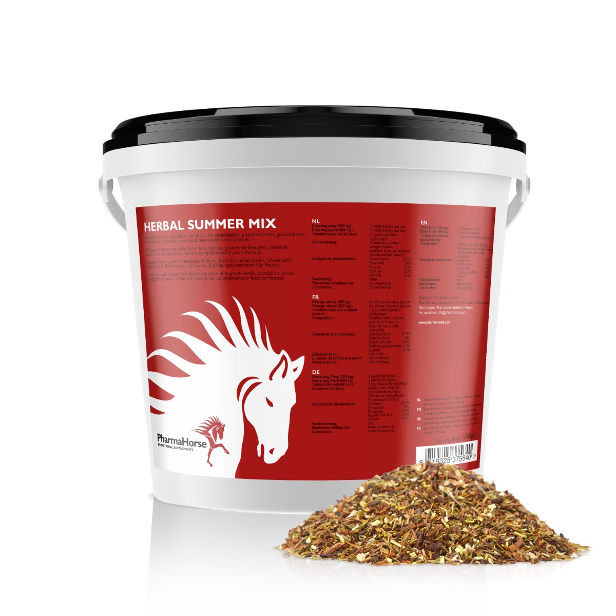PharmaHorse Herbal Summer mix is een uitgebalanceerde mix van de kruiden mariadistel, zoethout, fenegriekzaden, paardenbloem, goudsbloem, brandnetel en kamille.