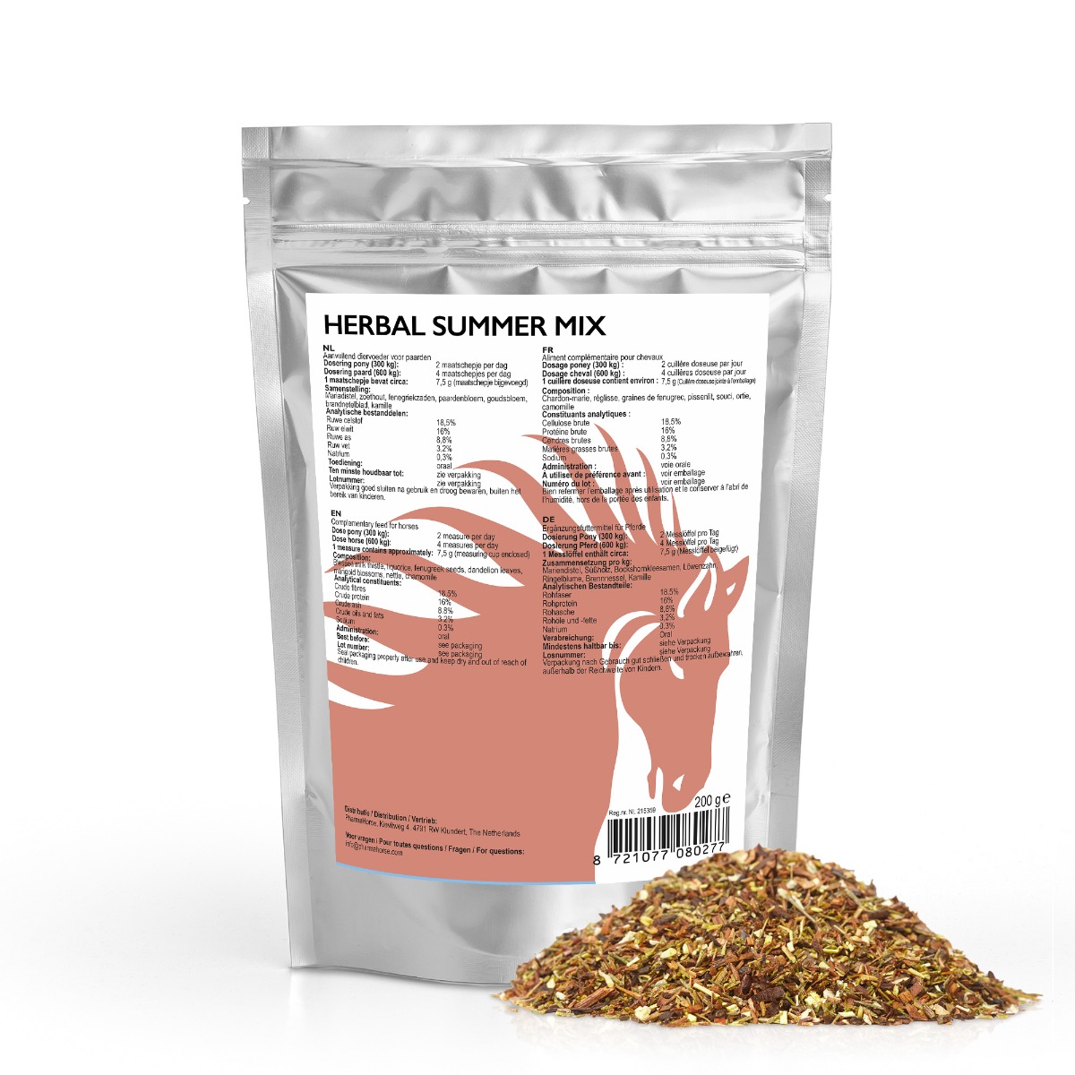 PharmaHorse Herbal Summer mix is een uitgebalanceerde mix van de kruiden mariadistel, zoethout, fenegriekzaden, paardenbloem, goudsbloem, brandnetel en kamille.
