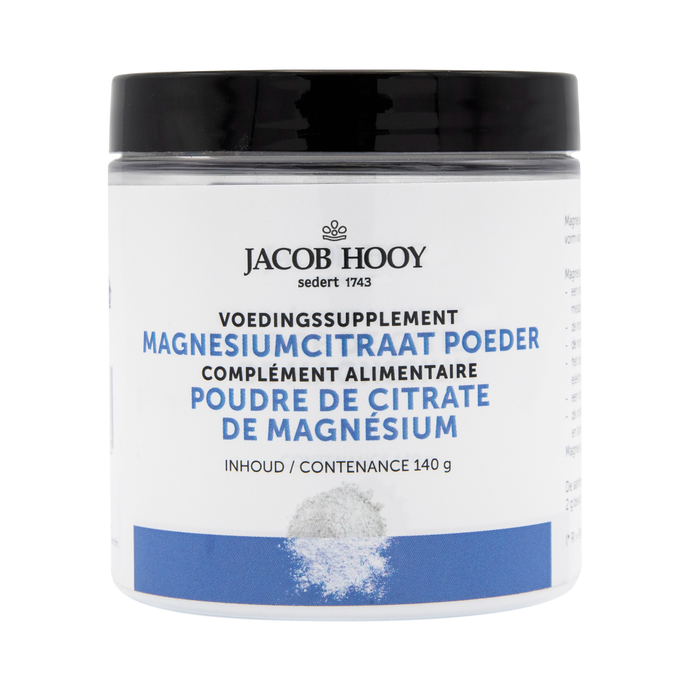 Jacob Hooy Magnesiumcitraat Poeder (140gr) is een goed opneembare vorm van magnesium. Magnesium is een zeer veelzijdig mineraal. Het draagt oa. bij tot een normaal energieleverend metabolisme, de normale werking van het zenuwstelsel, de normale werking van de spieren, het