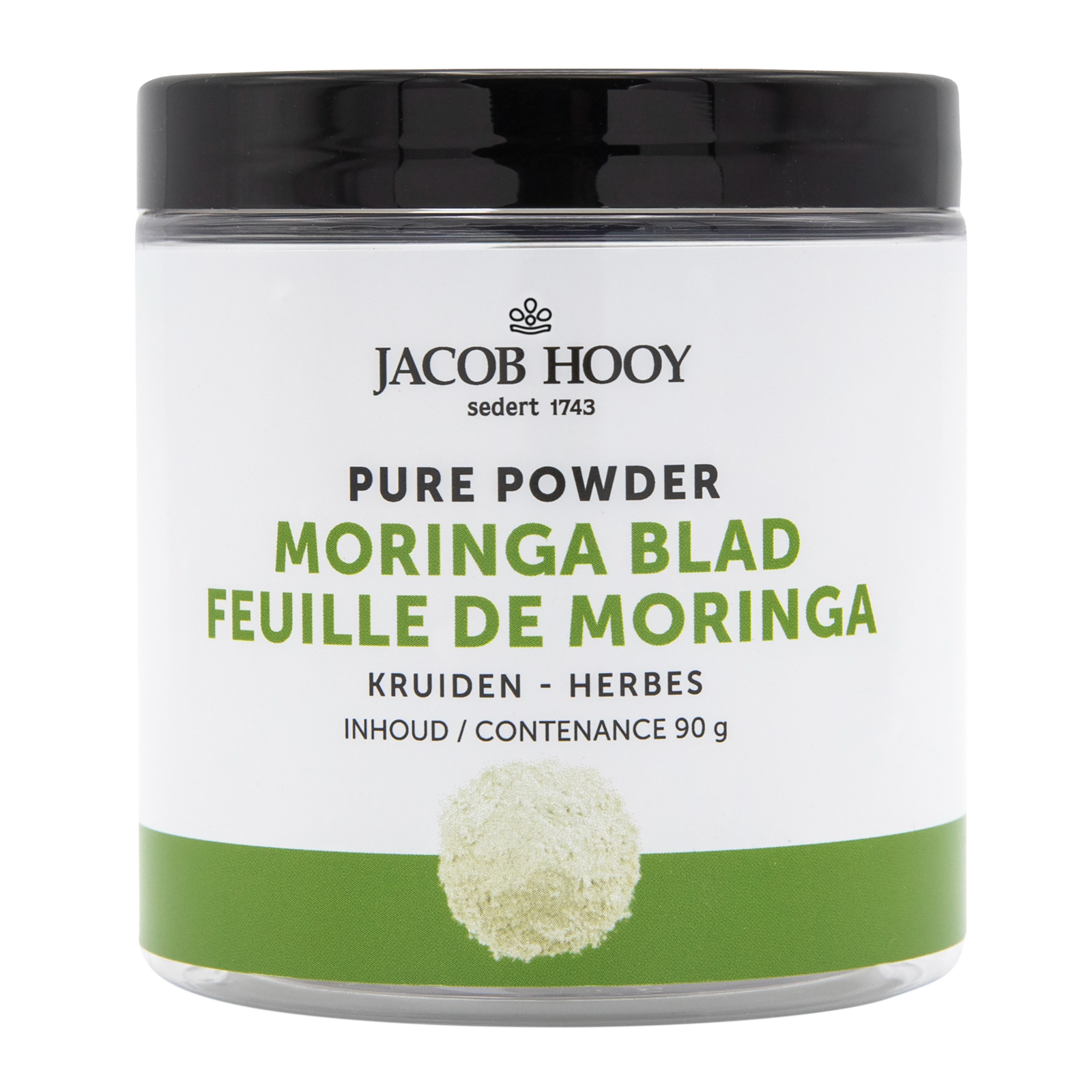 Jacob Hooy Pure Powder Moringa Blad Kruiden van Jacob Hooy is een supplement dat een ondersteunende werking heeft op de weerstand. De Moringa Oleifera boom staat bekend als een zeer voedzame boom en bevat onder een grote hoeveelheid vitamine C.Hoe te gebruiken? 1 theelepel