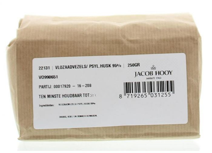 Jacob Hooy Vlozaadvezels (250gr) zijn een 100% natuurlijk voedingssupplement dat de spijsvertering op een milde wijze ondersteunt. Deze hoogwaardige vezels zwellen op in de darmen en zorgen voor een gezonde darmflora en een regelmatige stoelgang. Het product is geschikt voor