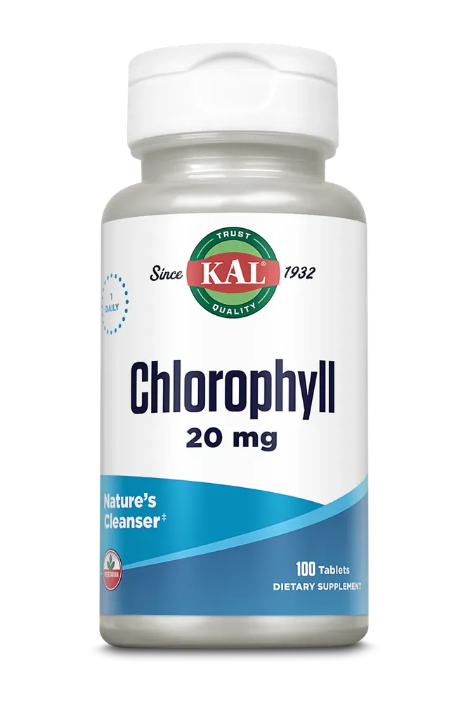 Kal Chlorophyl Tabletten (100 stuks) bevat het groene plantenpigment chlorofyl in een handige tabletvorm. Dit voedingssupplement levert 20 mg natrium-koper-chlorofylline per tablet als aanvulling op een groenterijke leefstijl. Dankzij de speciale ActivTab-technologie komen