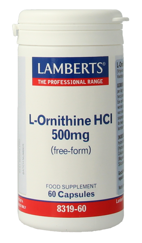 Lamberts L-ornithine 500mg Vegacapsules (60 stuks) zijn hoogwaardige aminozuur supplementen in vegetarische capsules. Dit product bevat L-ornithine in vrije vorm voor optimale opname door het lichaam.Lamberts L-ornithine 500mg Vegacapsules:• Zuivere L-ornithine in vrije