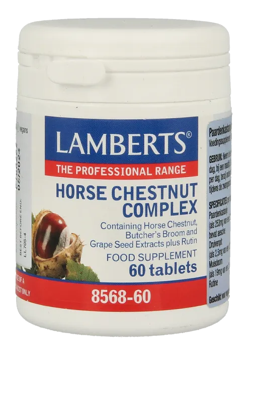 Lamberts Paardenkastanje Complex Tabletten (60 stuks) is een zorgvuldig samengesteld supplement dat paardekastanje-extract combineert met andere plantaardige ingrediënten. Geschikt voor vegetariërs en veganisten.Lamberts Paardenkastanje Complex Tabletten:Paardenkastanje