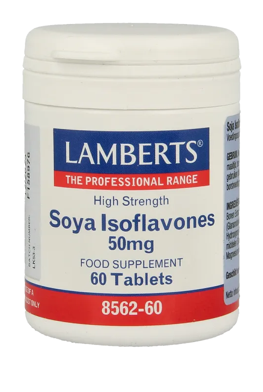 Lamberts Soya Isoflavones 50mg Tabletten (60 stuks) is een krachtig supplement dat 50 mg pure isoflavonen per tablet levert en gegarandeerd vrij is van genetisch gemodificeerde organismen (GMO-vrij). Isoflavonen zijn natuurlijke plantaardige stoffen die behoren tot de