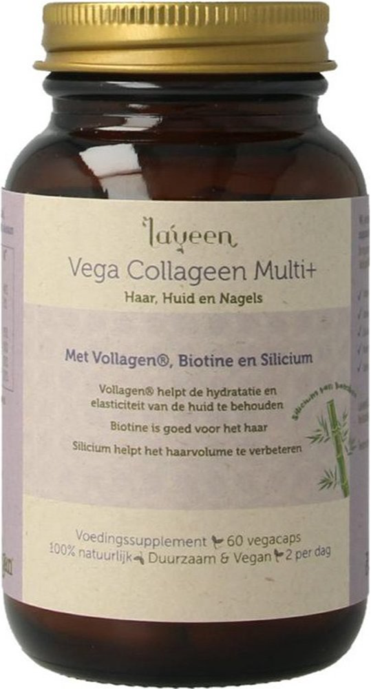 Laveen Vega Collageen Multi+ Capsules (60 stuks) combineren plantaardig collageen (Vollagen®) met een mix van vitaminen en mineralen die bijdragen aan het behoud van huid, haar en nagels. Vollagen® is 100% van plantaardige oorsprong en geschikt voor veganisten en