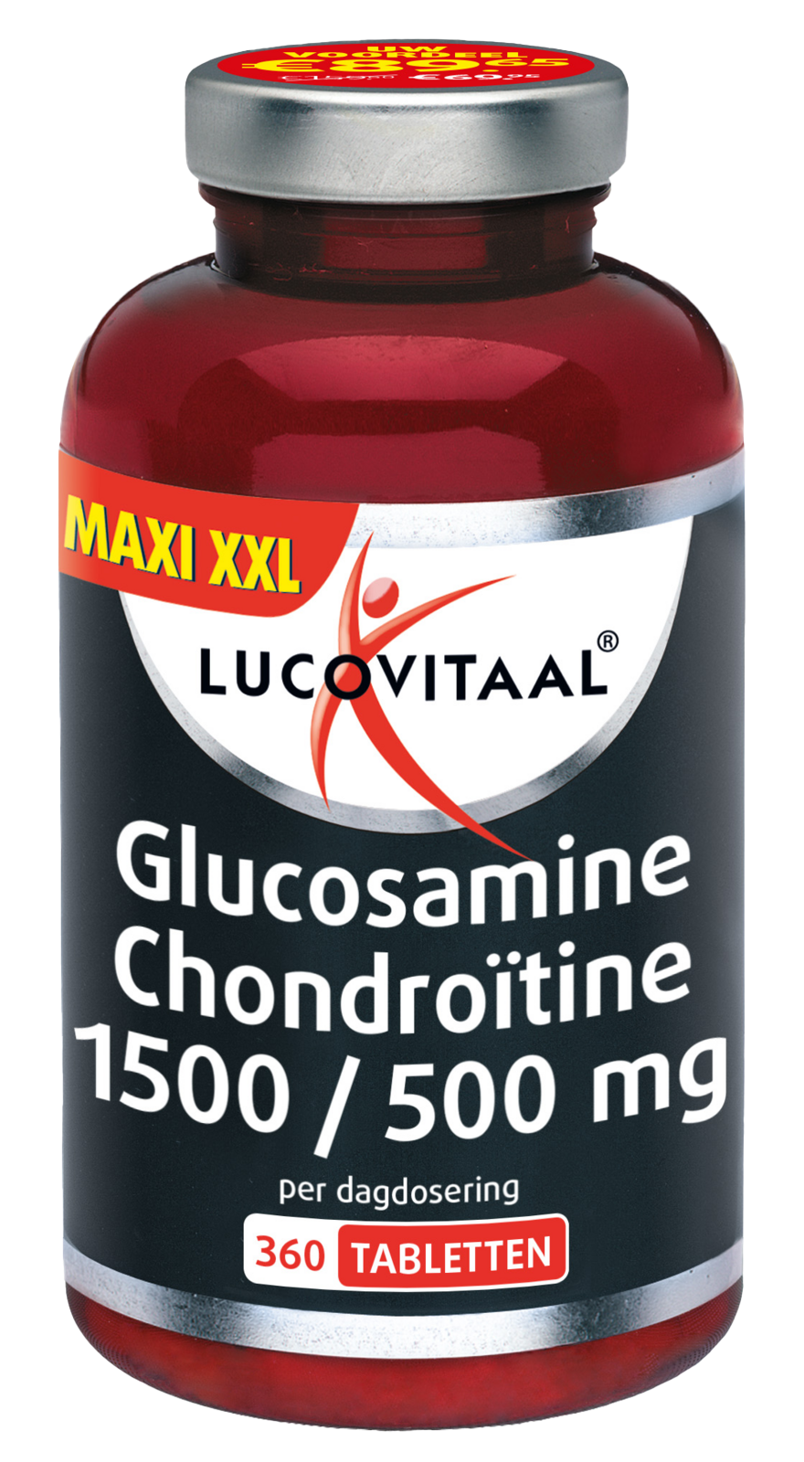 Lucovitaal Clucosamine Chondroïtine Tabletten. Het bevat per dagdosering 1500mg krachtige Glucosamine en 500mg Chondroïtine. DoseringEenmaal daags 2 tabletten met water innemen. Aanbevolen dagelijkse dosering niet overschrijden.