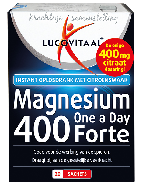 Lucovitaal Magnesium Poeder bevat 400mg magnesium per sachet. U gebruikt 1 sachet per dag en mengt deze met water voor een heerlijk citroendrankje. Magnesium ondersteunt uw lichaam bij het behoud van soepele en sterke spieren en speelt een rol bij de werking van de