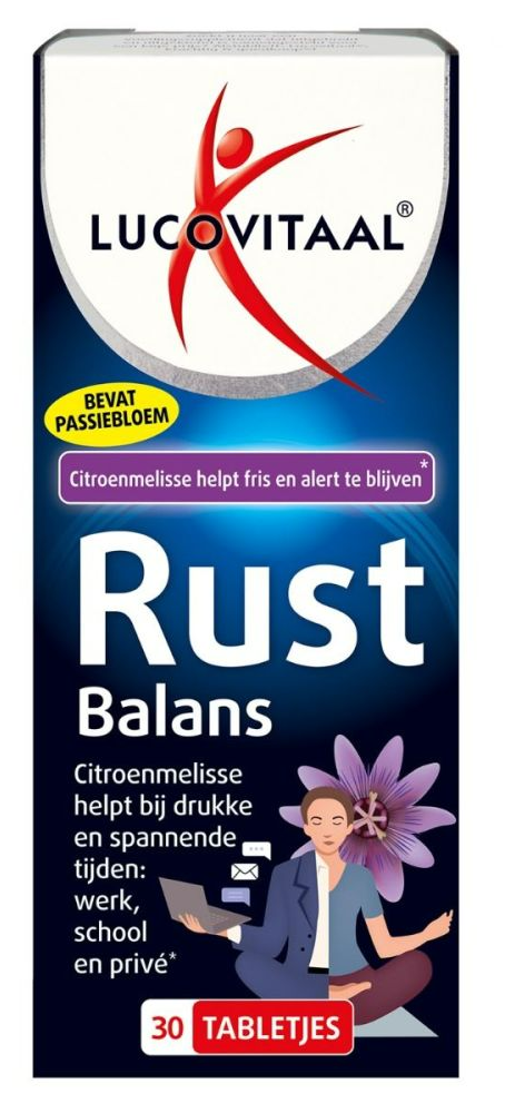 Lucovitaal Rust Balans Tabletten (30 stuks) is een voedingssupplement op basis van Magnesium (Tauraat) en citroenmelisse. Magnseium ondersteunt het energieniveau en een normaal concentratie vermogen. Citroenmelisse kan helpen evenwichtig te blijven in stressvolle